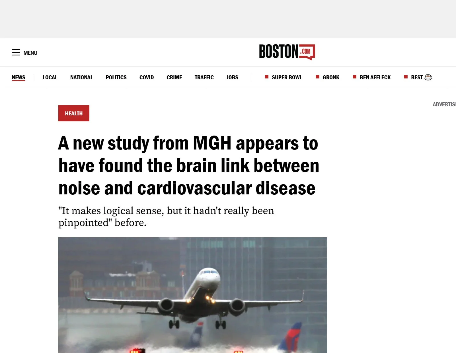 Mass General Study Appears to Have Found Brain Link Between Noise and Cardiovascular Disease; Boston.com, Dec. 3, 2019